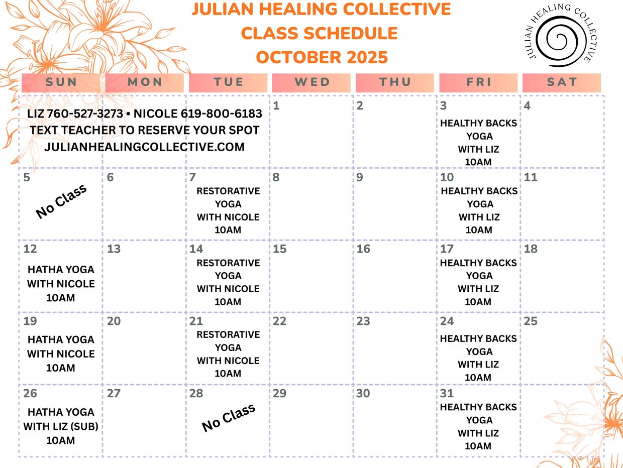 Class pass is good for all group yoga classes at the Julian Healing Collective